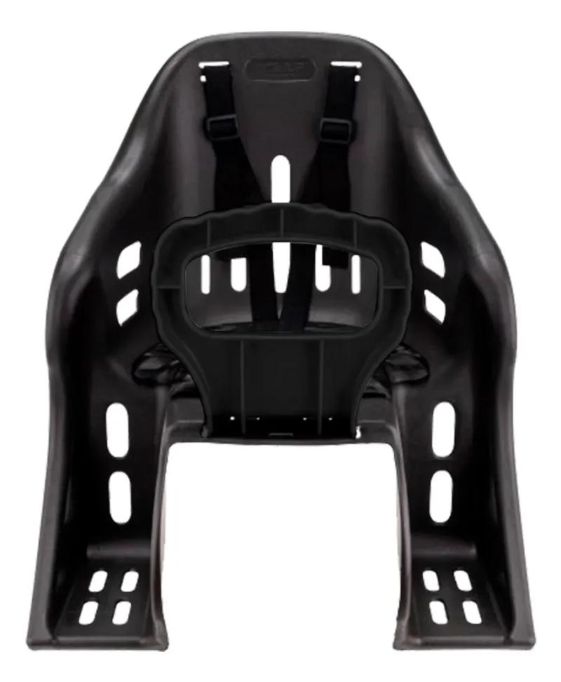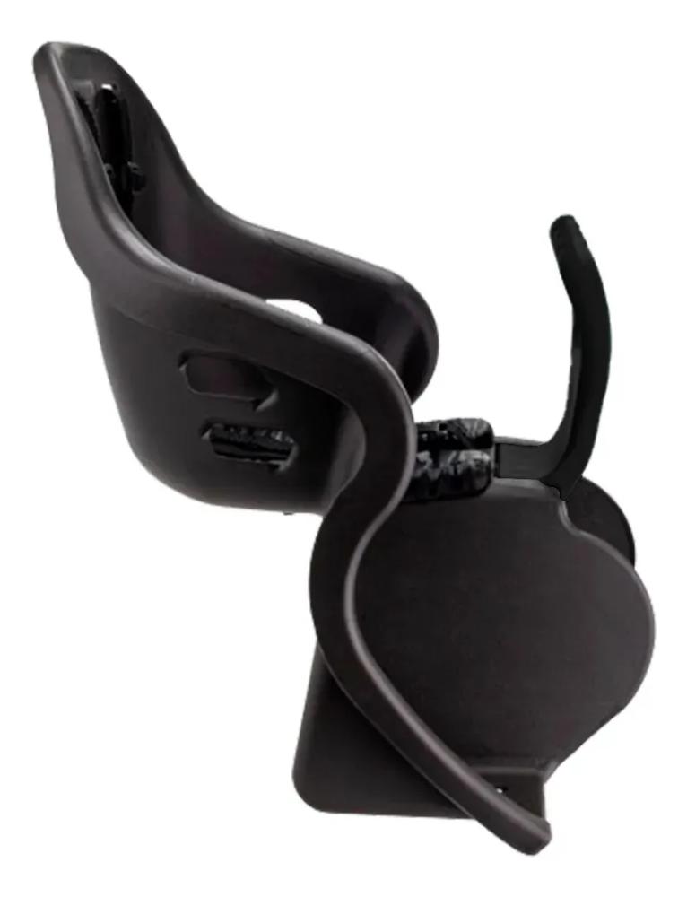 Para maior segurança, a cadeirinha é robusta, produzida com plástico polipropileno (PP) de alta resistência, possui refletores traseiros, cinto de segurança de 3 pontos, conjunto metálico de fixação, talas laterais para proteção de pernas e pés e apoio para as mãos.
